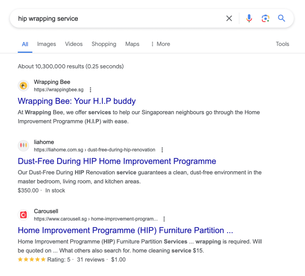 Keyword research: As the service is only needed on-demand, the website is optimized for keywords with high search intent.